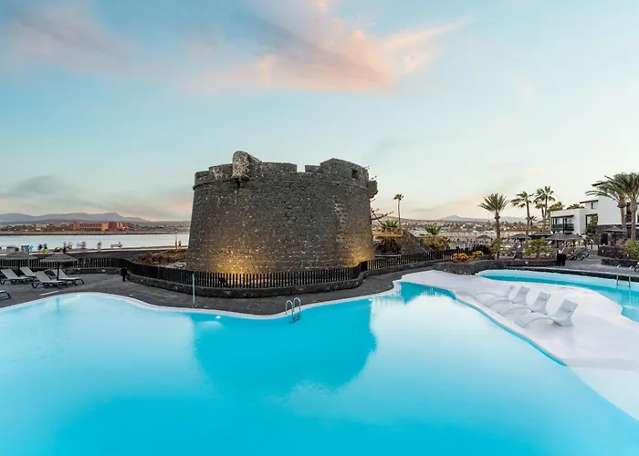 Barcelo Fuerteventura Castillo, a 4-star resort in Caleta de Fuste, features contemporary bungalows and studios, extensive pools, and diverse dining options. The hotel offers various amenities including direct beach access, a well-equipped wellness center, and a range of sports facilities, making it suitable for families and water sports enthusiasts.