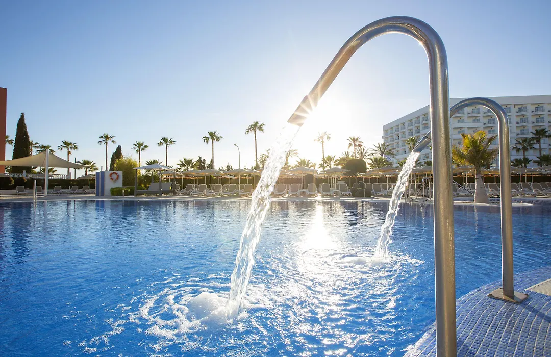 Hipotels Cala Millor Park is a 4-star hotel featuring an outdoor pool with Balinese beds and a wellness center. It offers spacious rooms and extensive facilities, including a buffet restaurant serving Mediterranean cuisine and a children's park. The hotel has an 8.8/10 rating on Booking.com.