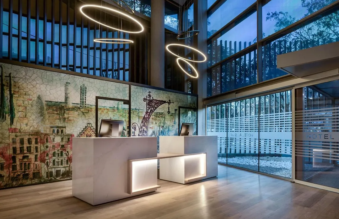 Transportation options for guests include the nearby Ildefons Cerda Station (subway), providing easy access to the city center and other attractions like Camp Nou and the National Art Museum of Catalonia, both within 1.2 miles. The number 46 bus connects directly to Barcelona's El Prat Airport, located 3.1 miles away.