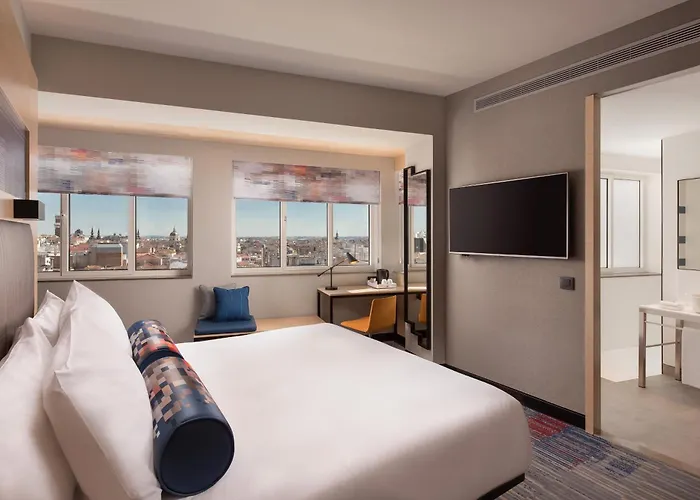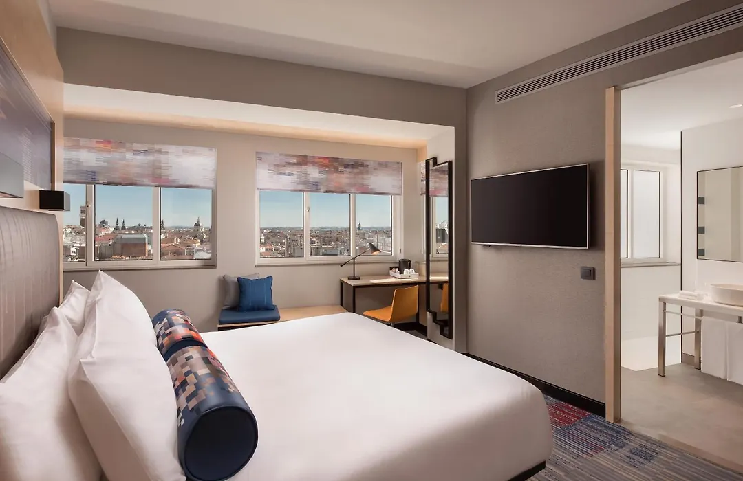 Aloft Madrid Gran Via offers spacious urban-inspired accommodations in the heart of the city, boasting a 4-star rating and an impressive 8.9/10 rating on Booking.com. Guests can enjoy a seasonal outdoor swimming pool, a fitness center, and free Wi-Fi. The hotel is located near iconic attractions like the Royal Palace and Plaza Mayor.