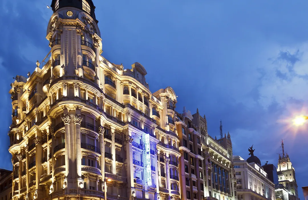 The hotel is situated near major attractions, with the Royal Palace just a 12-minute walk away. Public transportation options like Callao Metro Station and numerous bus lines are easily accessible from the hotel.