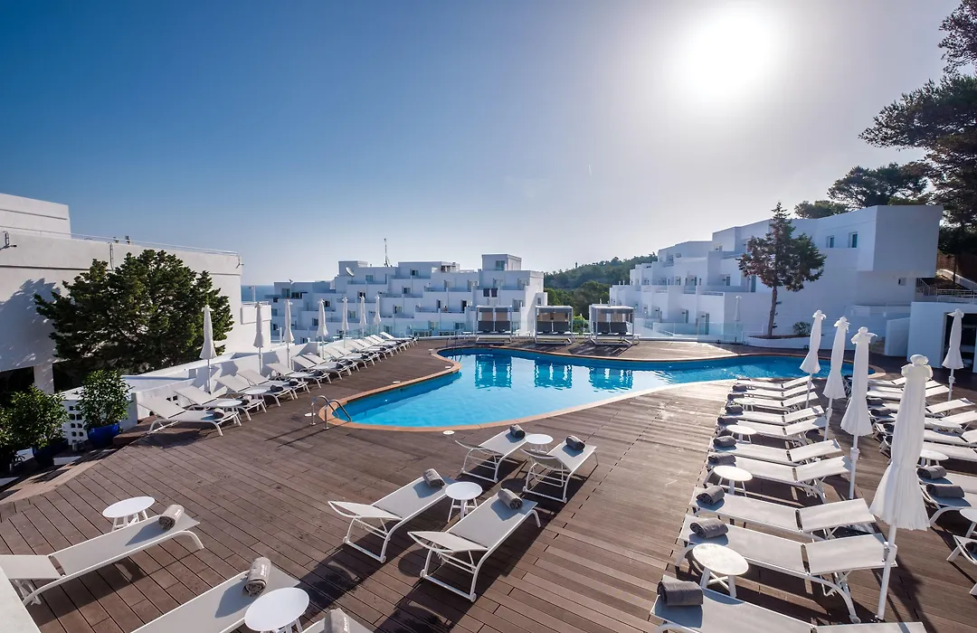 Barcelo Portinatx - Adults Only features a large solarium and an outdoor wellness area, perfect for relaxation and restorative massages. Guests can also partake in various water sports, hiking, and cycling activities nearby.