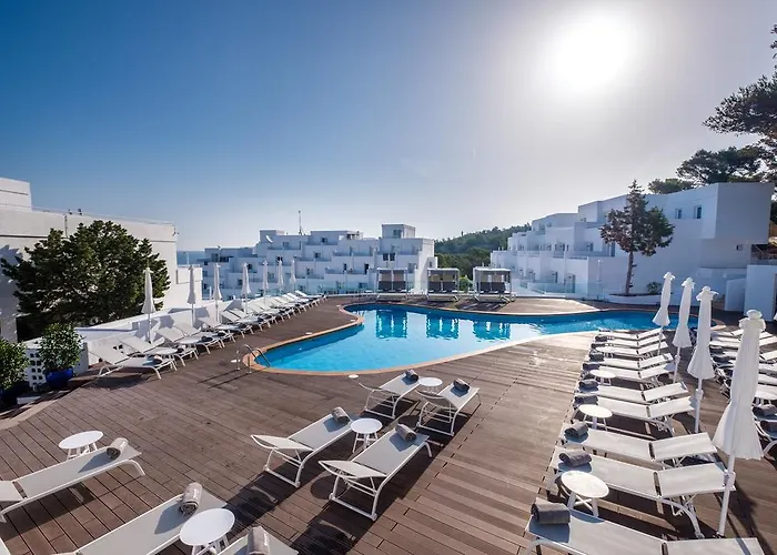 Barcelo Portinatx - Adults Only offers a serene beachfront oasis featuring two swimming pools and an outdoor wellness area. This 4-star hotel caters exclusively to adults, providing a retreat for relaxation and various sports activities.