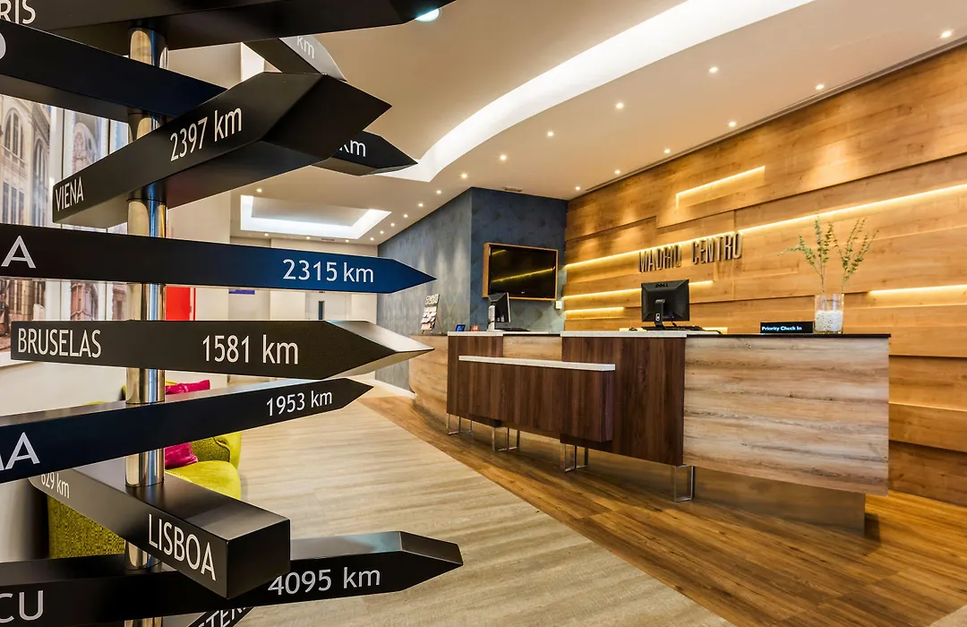 The hotel offers a 24-hour gym for guests, a spacious living room with colorful couches, vending machines, and a tour desk that can assist with booking tickets for local attractions. The property has a 24-hour reception and provides easy access to major sites like the Royal Palace and El Prado Museum.