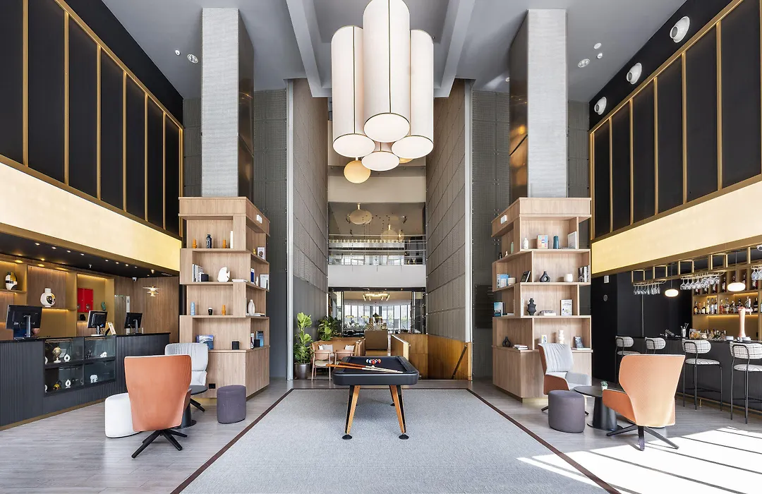 The hotel is located near the Barcelona International Convention Centre and Diagonal Mar shopping mall, with easy access to the historic Gothic quarter and Sagrada Familia via a 15-minute subway ride. A late check-out service is available during summer months, along with secure parking.