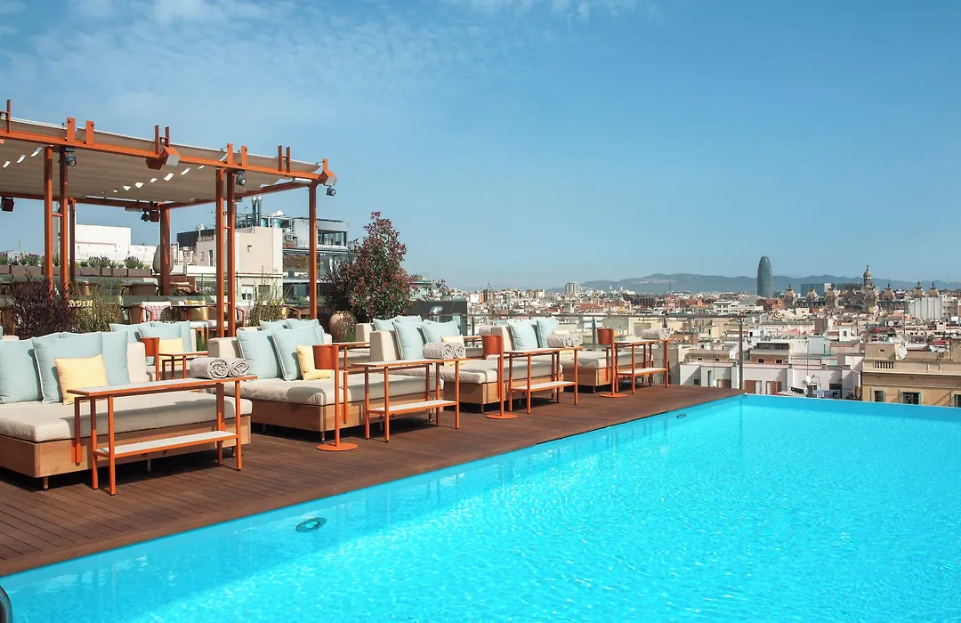 Grand Hotel Central, Small Luxury Hotels, is a 5-star hotel located on Via Laietana, offering a rooftop infinity pool and an urban spa for relaxation. Guests can enjoy fine dining options and a historic library featuring Cambó's personal collection.