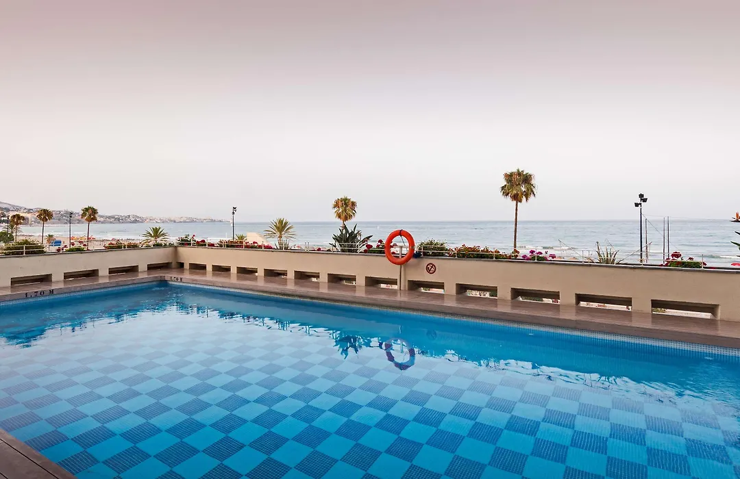 Guests can relax at the outdoor pool or on the terrace overlooking Los Boliches beach. A children's play area and physiotherapy services are also available, complementing the leisure offerings.