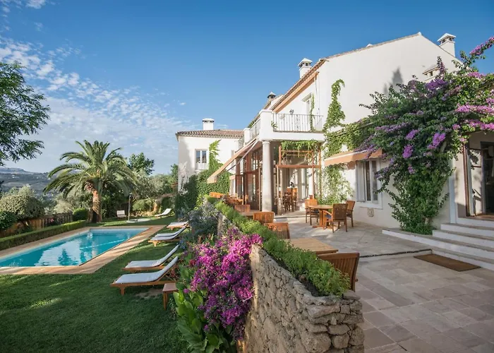 The hotel's landscaped garden includes a pool surrounded by cypress and palm trees, making it an ideal spot for relaxation. Outdoor and culinary activities are available, including guided bike tours through the Serranía de Ronda.