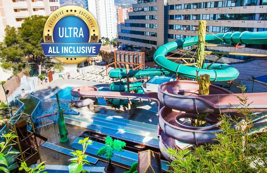 Magic Aqua Rock Gardens, a 4-star Benidorm hotel, features a unique African-themed design including an adventure water park and a Grand Pool Complex. Guests can enjoy access to a variety of dining options, entertainment programs, and an Ultra All-Inclusive holiday experience.