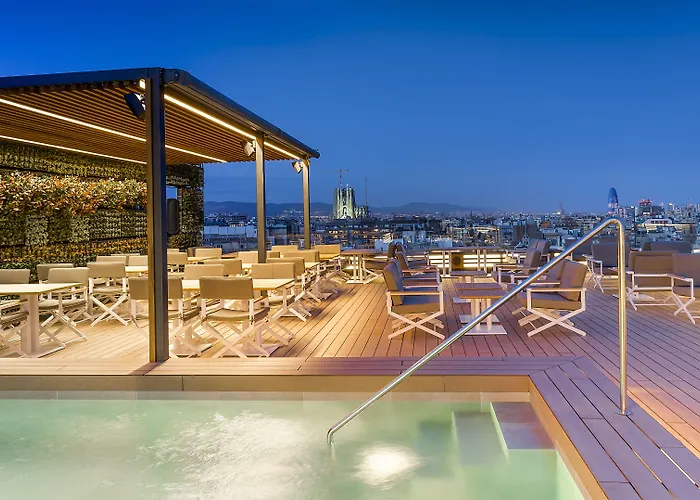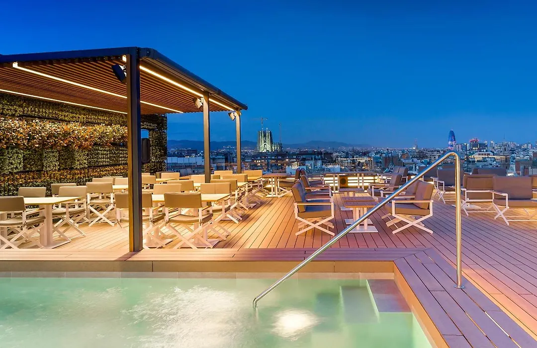 The hotel features a rooftop terrace with stunning views of the city, including Sagrada Familia and Casa Batlló. A spa with various treatments and wellness services provides options for relaxation, while a fitness center caters to those wishing to maintain their routine.