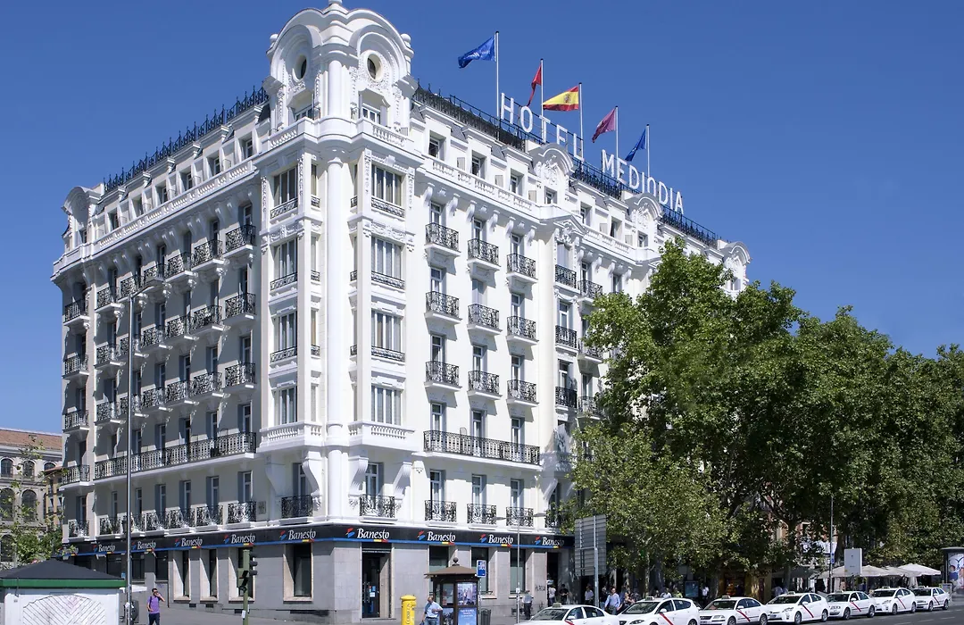 Hotel Mediodia, a 2-star Madrid hotel with an 8.6/10 Booking.com rating, features modern amenities in a historic building dating back to 1914. This hotel is situated close to Atocha train station and notable attractions like the Prado and Reina Sofía museums.