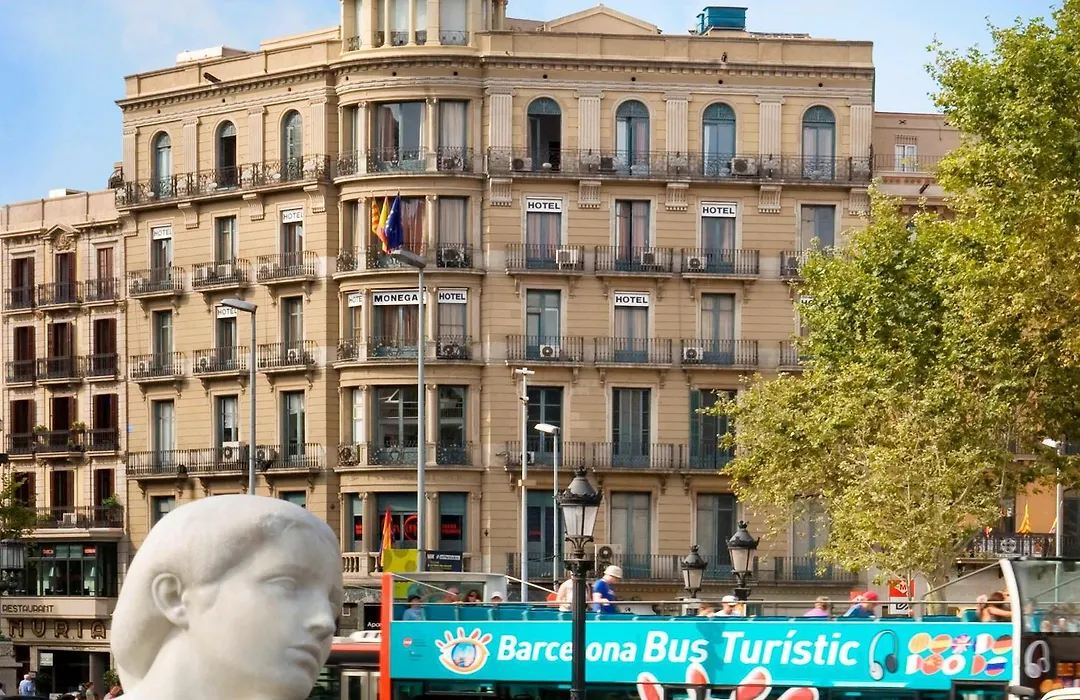 Hotel Monegal offers 2-star accommodations with convenient amenities in the heart of Barcelona. Guests can access complimentary WiFi and air-conditioned rooms. This hotel overlooks the city's main square of Plaça Catalunya.