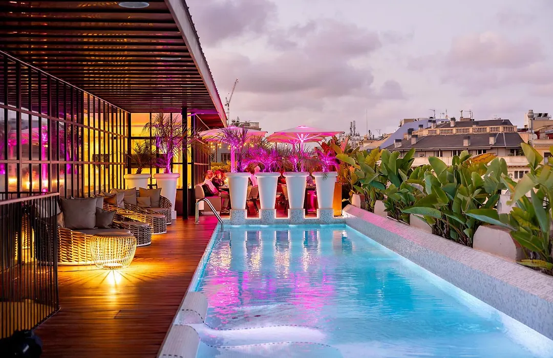 Monument Hotel includes a terrace with an outdoor swimming pool, perfect for relaxing in a scenic environment. Guests can also access personalized spa treatments designed to promote wellness, ensuring a luxurious experience. The design features modernist elements and a blend of textures throughout the hotel.