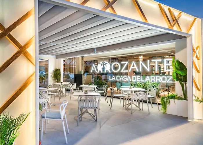 Dining options include the à la carte restaurant Arrozante, specializing in rice dishes, and La Trattoria La Dolce Vita, offering Italian and Mediterranean cuisine. The Breeze Gastro Bar Pool provides healthy snacks throughout the day.