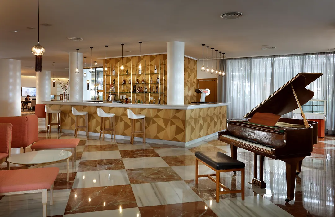 Palladium Hotel Palmyra - Adults Only is a four-star beachfront hotel offering an adults-only experience with all-inclusive options. Key amenities include a large seafront swimming pool, two restaurants, and exclusive bars. This San Antonio (Ibiza) hotel is situated next to Playa de S'Arenal.