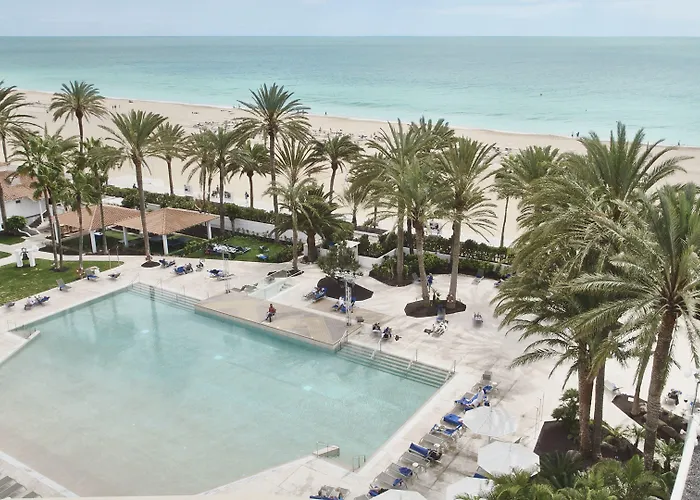 Robinson Jandia Playa - Adults Only (4-star) offers direct access to Jandia Beach and features a large outdoor pool, tennis courts, and a spa center. This hotel has an 8.3/10 rating on Booking.com and provides an array of recreational activities tailored for adults.