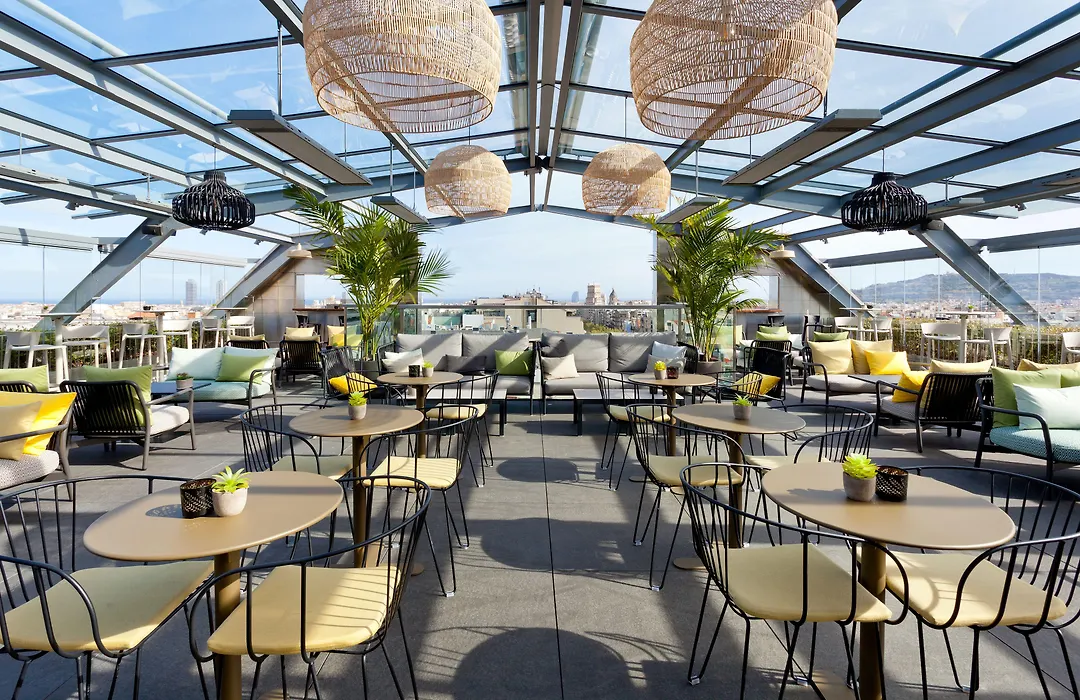 Dining options include an extensive buffet breakfast comprising a variety of local and international products. The rooftop 83.3 Terrace Bar serves cocktails and tapas, providing stunning skyline views of Barcelona. For those seeking outdoor dining experiences, the hotel's garden patio is available for private events.