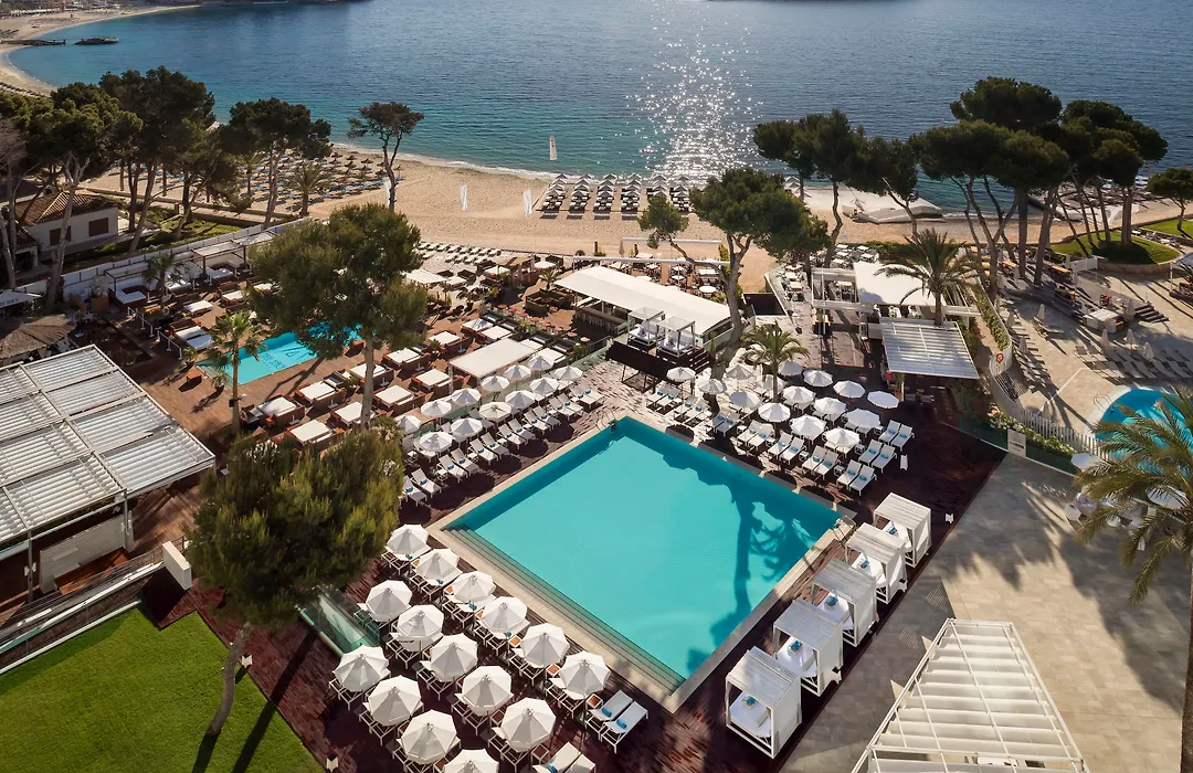 For leisure, the hotel features an outdoor pool, YHI Spa with wellness treatments, and direct beach access. Guests can also enjoy activities like yoga sessions or explore nearby attractions including Twisted Water Park and Isla de sa Porrassa.