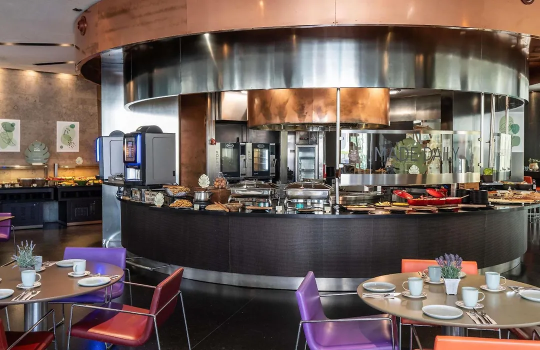 Novotel Barcelona City is a 4-star hotel offering panoramic city views and a seasonal outdoor pool. This family-friendly accommodation features a gourmet bar specializing in tapas, wines, and cocktails, ensuring a modern hospitality experience.
