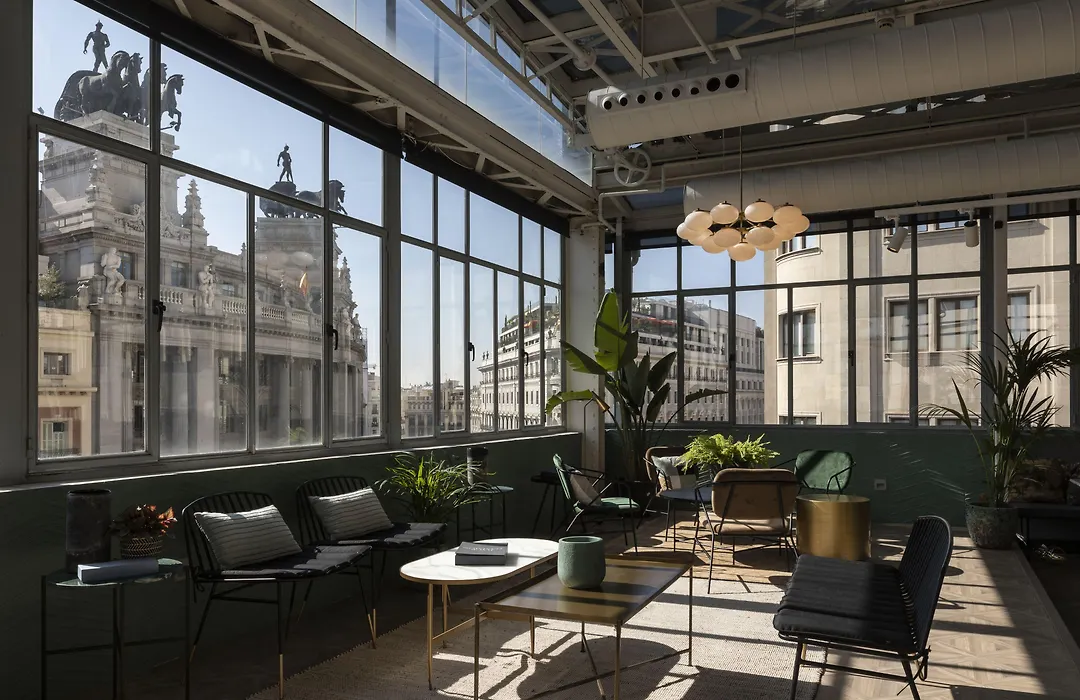 Petit Palace Alcala stands out as a 4-star boutique hotel housed in Madrid's first skyscraper, the Edificio la Unión y el Fénix Español. It features modern amenities, a restaurant with stunning panoramic views, and a pet-friendly policy.