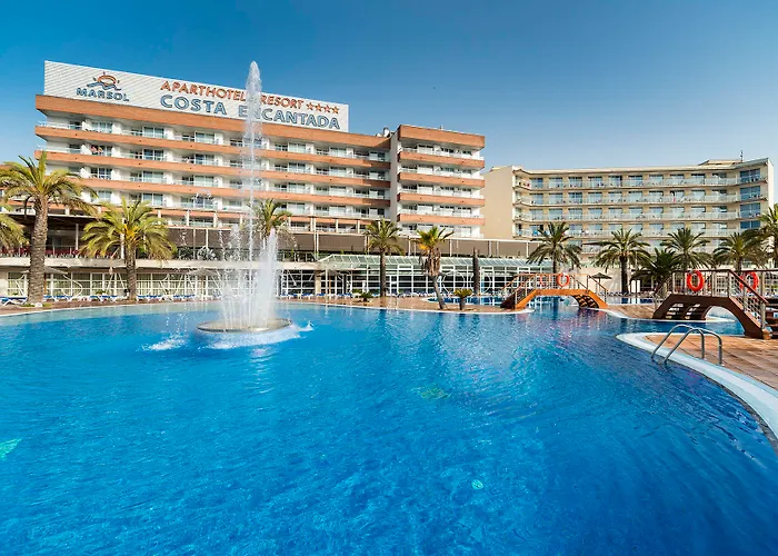 Aparthotel Costa Encantada offers spacious, family-friendly accommodations with an all-inclusive option and a large outdoor pool complex. This 4-star Lloret de Mar hotel features amenities such as a children's water park, spa services, and a restaurant with a buffet. The hotel is set in a quiet residential area, just 1969 ft from the beach.