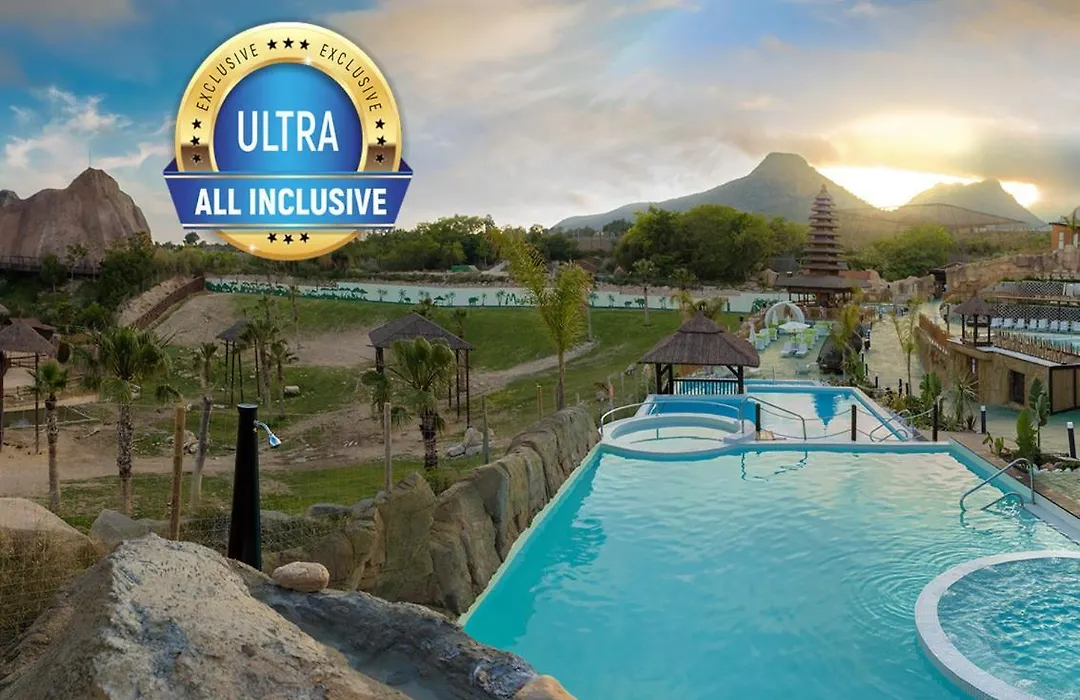 Magic Natura Resort is a 4-star hotel designed for families, providing an Ultra All Inclusive experience featuring direct access to Terra Natura and Aqua Natura theme parks. Guests can enjoy luxurious accommodations with unique Polynesian design in a natural environment surrounded by exotic plants and wildlife.
