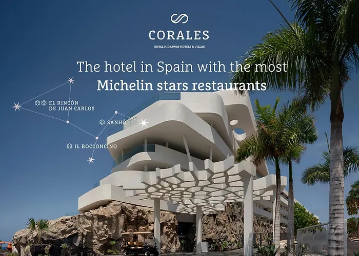 Royal Hideaway Corales Suites (Adults Only) is a 5-star Costa Adeje (Tenerife) hotel offering luxury accommodations with ocean views and direct access to La Enramada Beach. Guests benefit from three heated outdoor saltwater pools, upscale dining with Michelin-starred cuisine, and a wellness center featuring Ayurveda-inspired treatments.