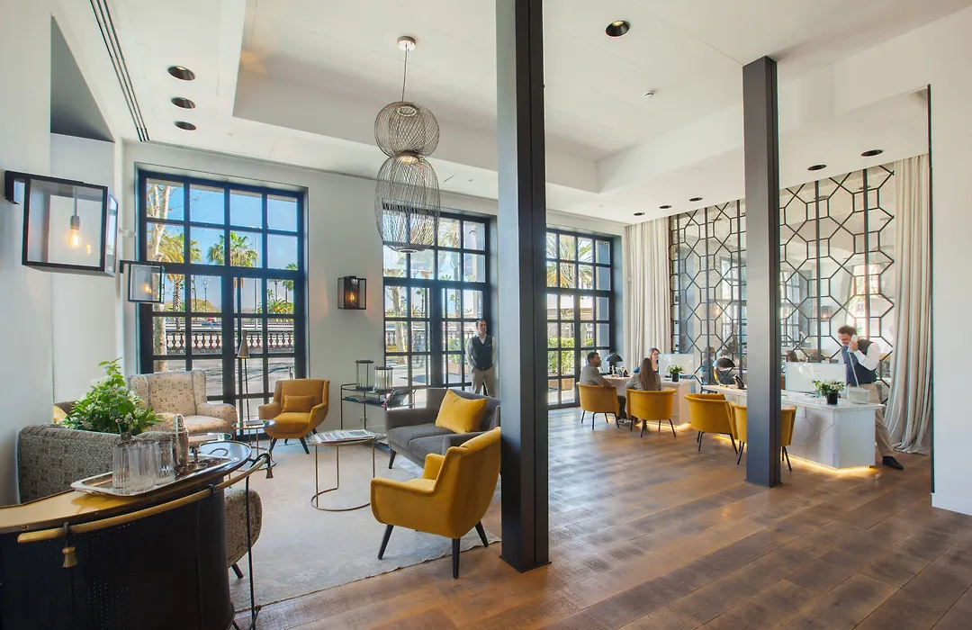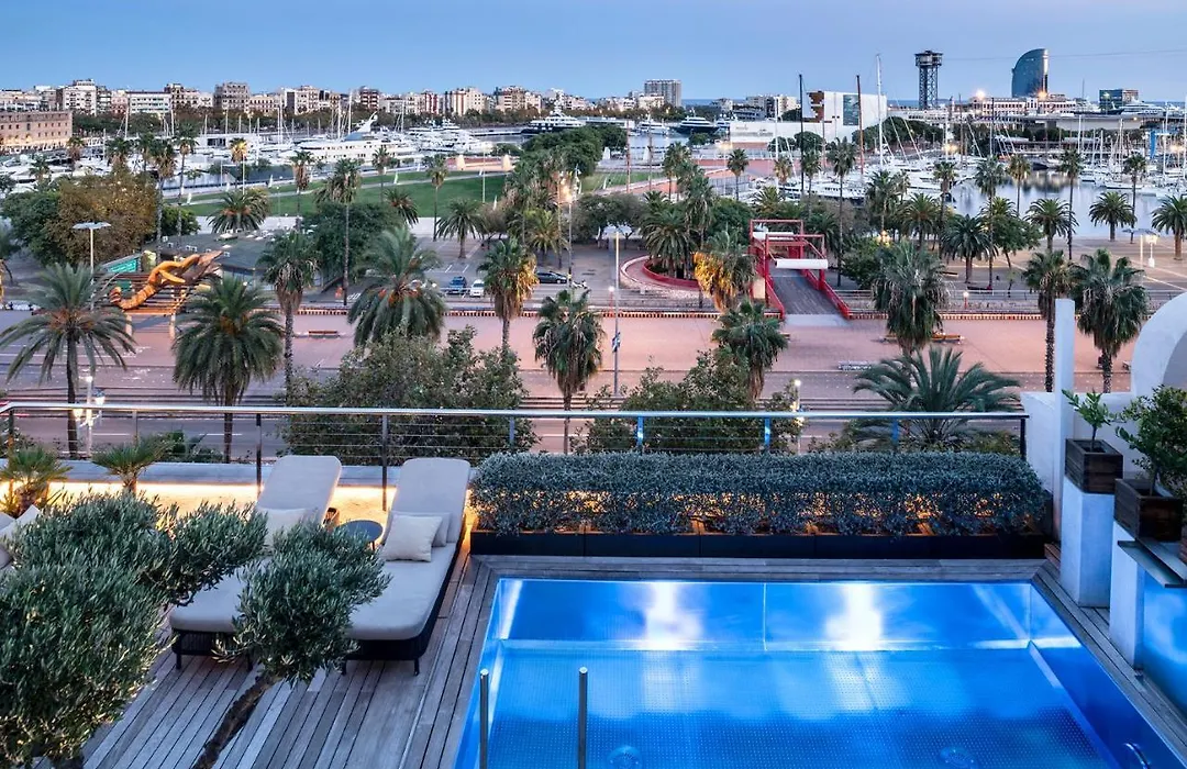 Dining includes the upscale Informal restaurant, specializing in Mediterranean cuisine, and Agreste Mar, featuring Italo-Catalan dishes using seasonal ingredients. Guests can enjoy signature cocktails on the rooftop terrace, which also offers stunning views of the marina.